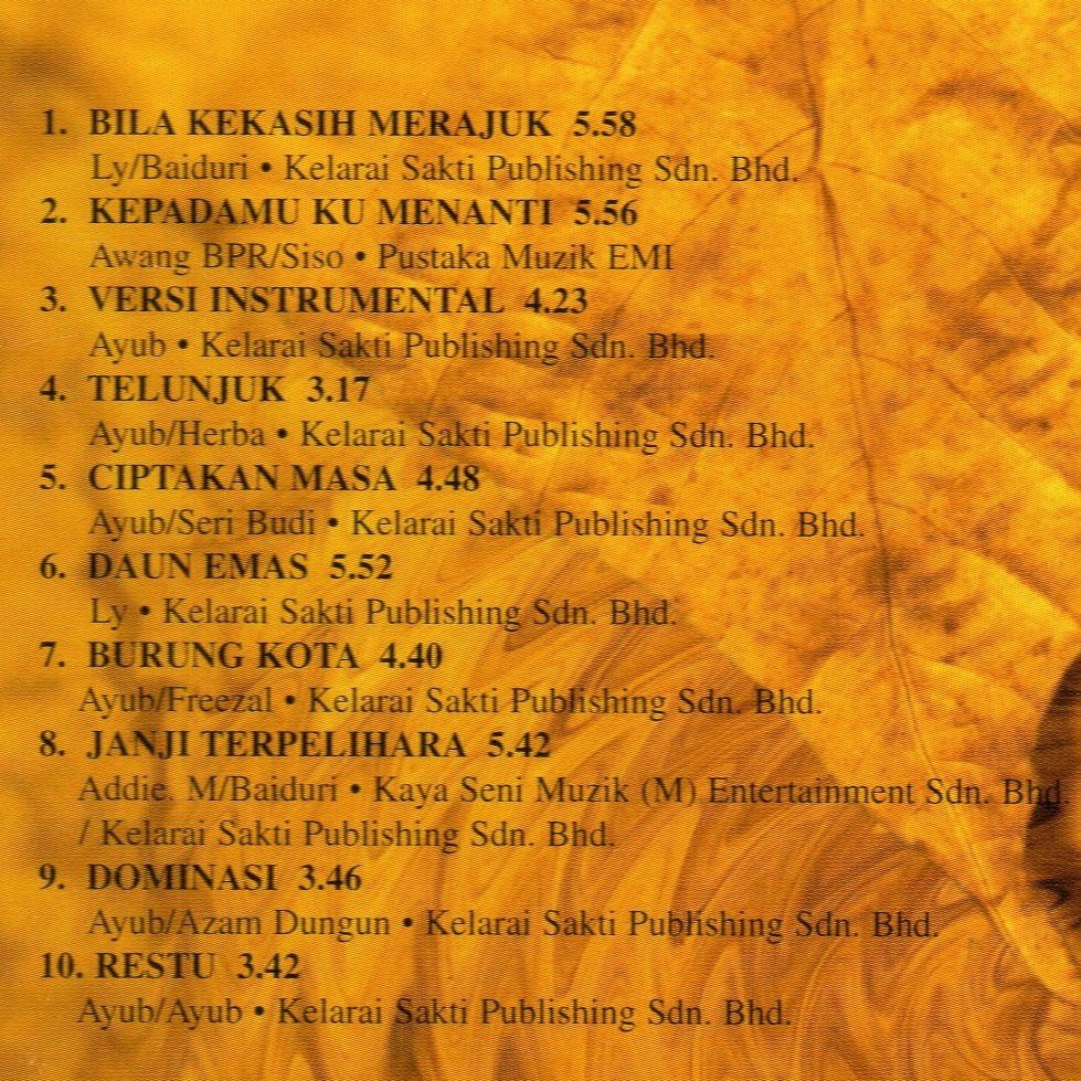 Judul Lagu. Bila kekasih aku merajuk Adakah mungkin engkau meluncur Hebatnya cinta banyak dugaannya Rindu dan dendam bukan permainan Kerna cintaku hanya padamu Hanya padamu. Seperti kawan-kawan pekerjaan keluarga dan sebagainya.